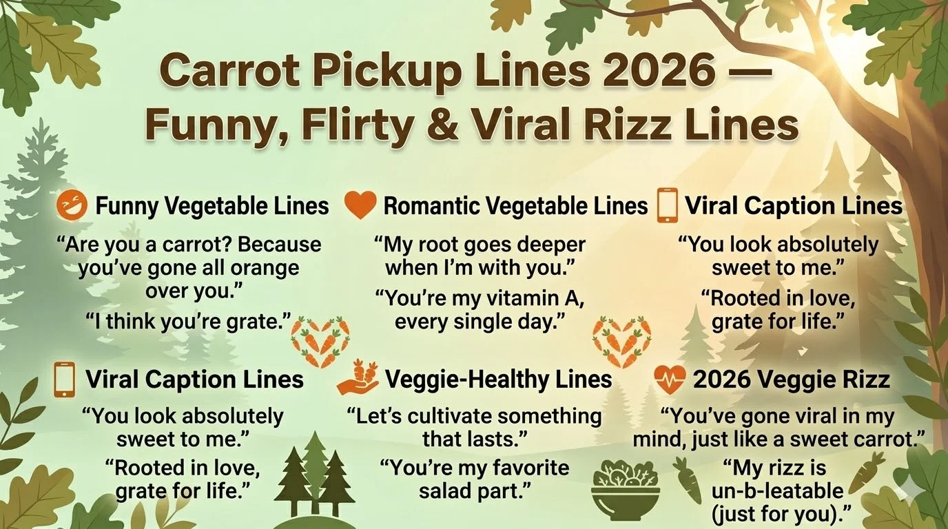 Carrot pickup lines are playful, low-pressure openers that use carrot imagery and vegetable puns to stand out from bland greetings. They work because they’re surprising, brief, and often funny — and because a little humor lowers social defenses. This article is structured for easy scanning: