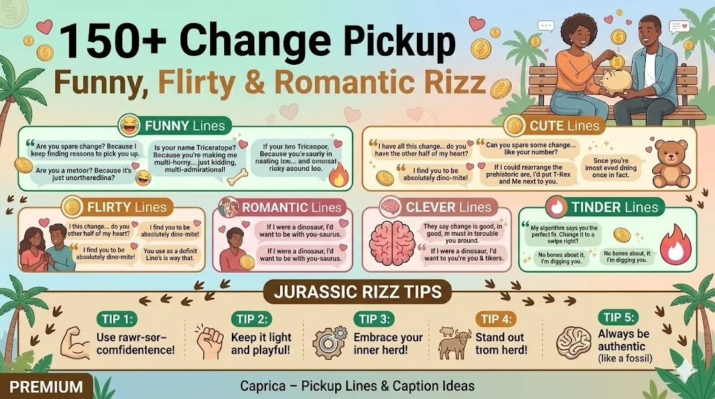 Welcome — this is Caprica’s fresh, modern pillar guide to Change-Themed pickup lines: short, shareable rizz lines that riff on change as transformation (you changed my life) and change as coins (loose money). Use the lines below for quick DMs, Tinder bios, Instagram captions, or cheeky in-person openers. We built this as a practical, NLP-informed resource that mixes humor, lexical ambiguity, and simple conversion tactics so you can pick, personalize, and deploy lines that actually get replies.